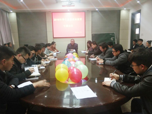 最后,李豪老师还对学生安全教育、心理健康教育以及2016年毕业生就业创业等工作进行了全面具体的安排部署。(贾明星)