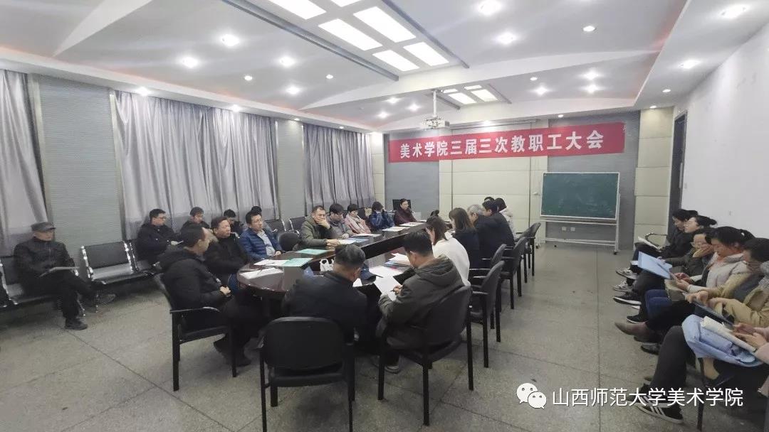 三届三次教职工大会在学院会议室隆重召开。院党委书记史晋奎、党委副书记庞丽娟、副院长张一平、郑煜川,团委副书记杜丰之以及全体教职工参加了此次会议,大会由院党委副书记、工会主席庞丽娟主持。